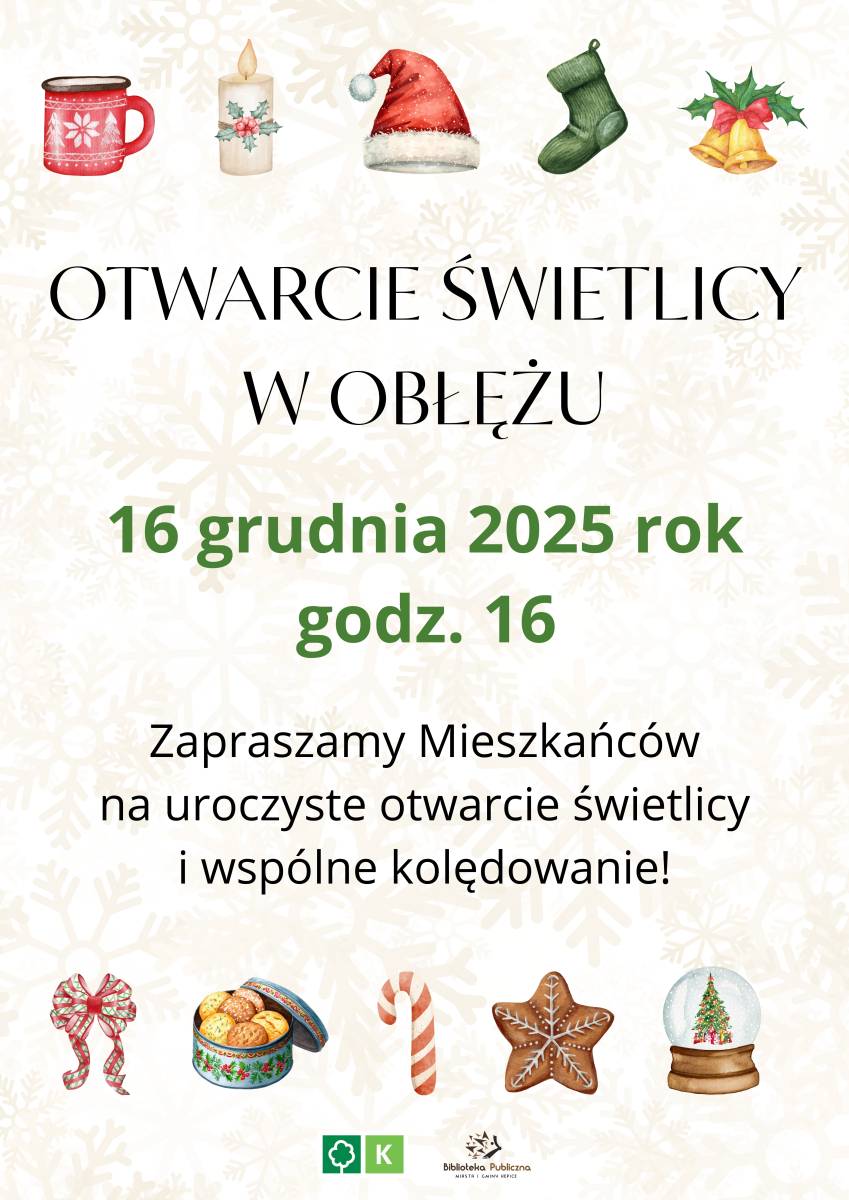 Świetlica w Obłężu po remoncie służy już lokalnej społeczności, ale dopiero teraz mamy przyjemność zaprosić na jej uroczyste otwarcie. 16 grudnia o godz. 16 wspólnie z mieszkańcami Obłęża przetniemy wstęgę, a później spędzimy czas przy kolędach i świątecznym poczęstunku.